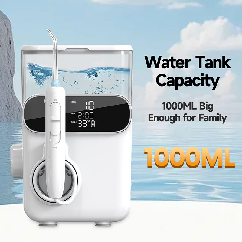 【Specially Designed for Family Use】The oral irrigator comes with a 1000ml detachable reservoir, perfect for 2–4 persons to use with no refills required. The unique vertical nozzle storage design with drain holes can store 5 tips at a time to maintain the cleanliness of the nozzles
