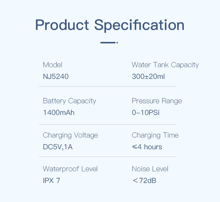 【Επαναφορτιζόμενη τύπου C】 Η συσκευή ρινικής πλύσης είναι κατασκευασμένη με επαναφορτιζόμενη μπαταρία 1200 mAh, η οποία μπορεί να διαρκέσει 4 εβδομάδες μετά την πλήρη φόρτιση. Διαθέτει καλώδιο ταχείας φόρτισης USB και αθόρυβη λειτουργία. Είναι εύκολο και βολικό να ξεπλύνετε τα ιγμόρειά σας και να αναπνέετε ευκολότερα. (ΣΗΜΕΙΩΣΗ: Ο προσαρμογέας δεν περιλαμβάνεται). |
