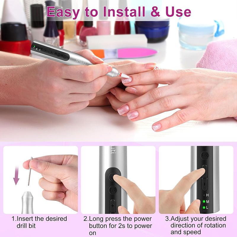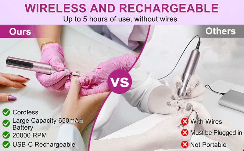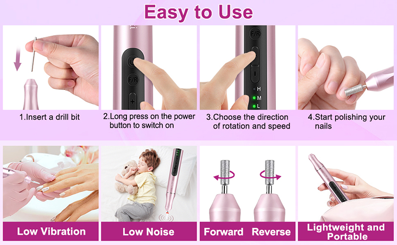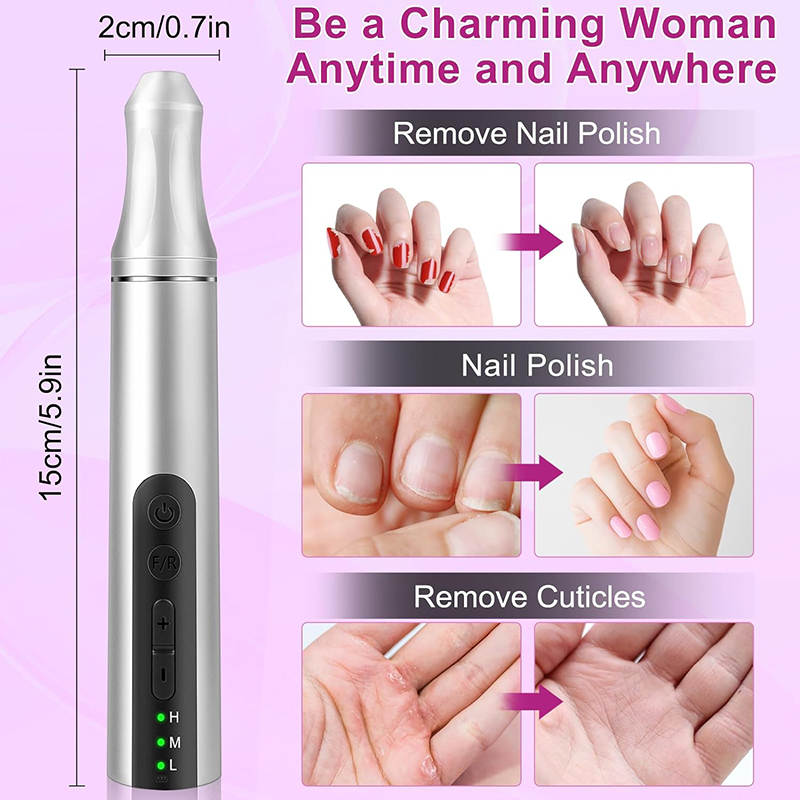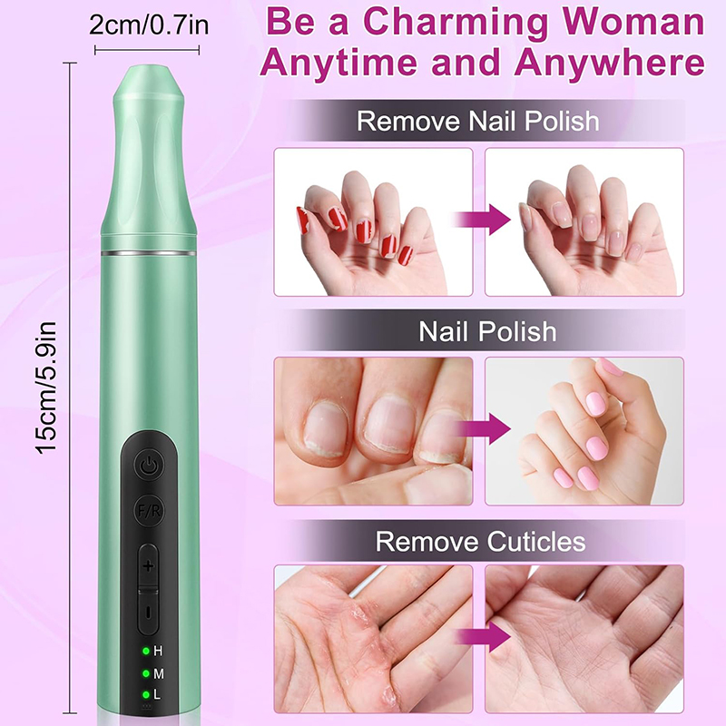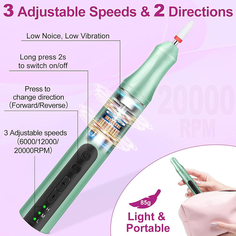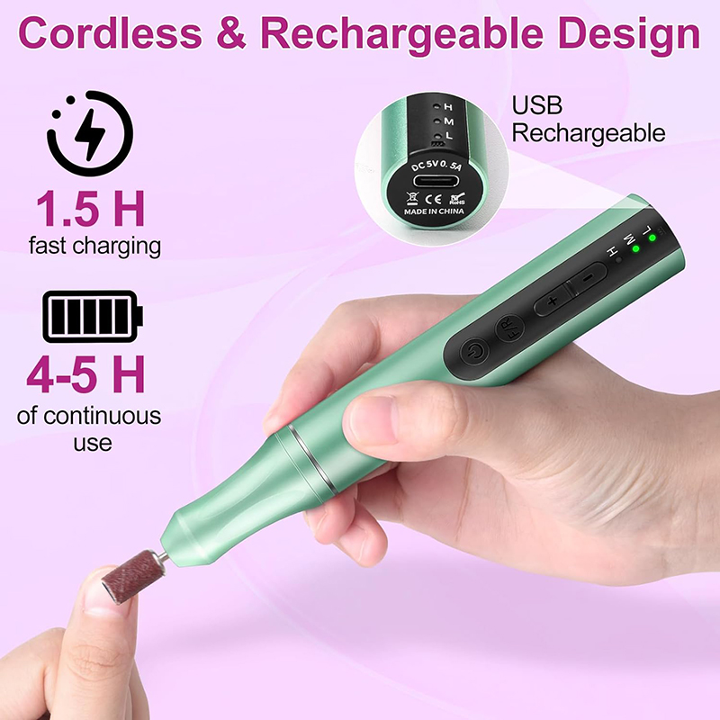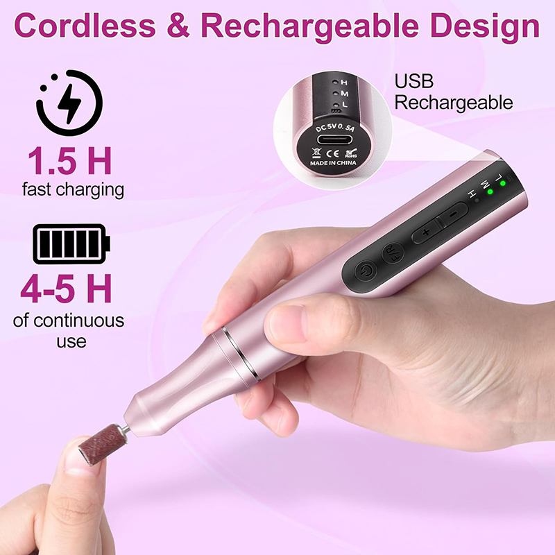 τα τρυπάνια νυχιών για ακρυλικά νύχια είναι σχεδιασμένα για να είναι ελαφριά (85g) και μπορούν να χωρέσουν στην τσάντα ή στην τσέπη των ρούχων σας. Έρχεται επίσης με ένα καλώδιο φόρτισης USB το οποίο μπορεί εύκολα να συνδεθεί σε οποιαδήποτε συσκευή USB για φόρτιση, καθιστώντας σας βολικό να απολαύσετε τη φροντίδα των νυχιών σας οποτεδήποτε και οπουδήποτε.