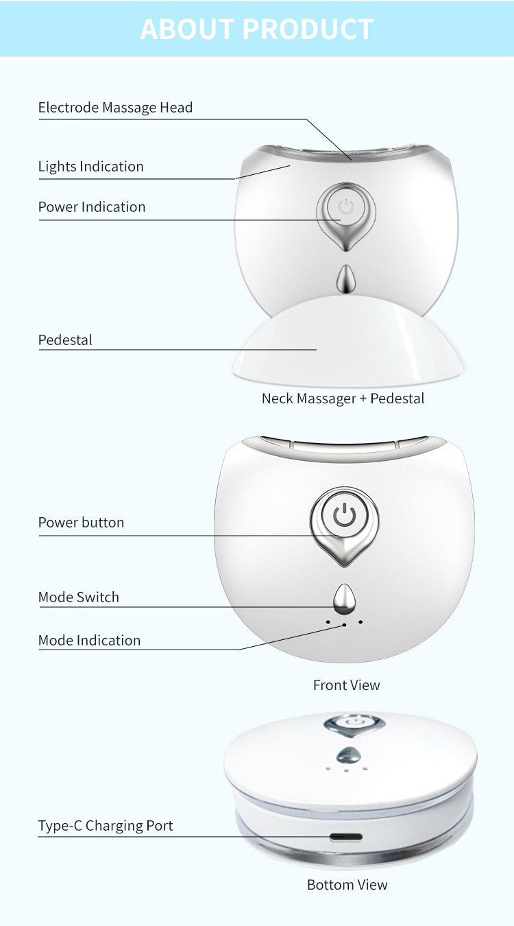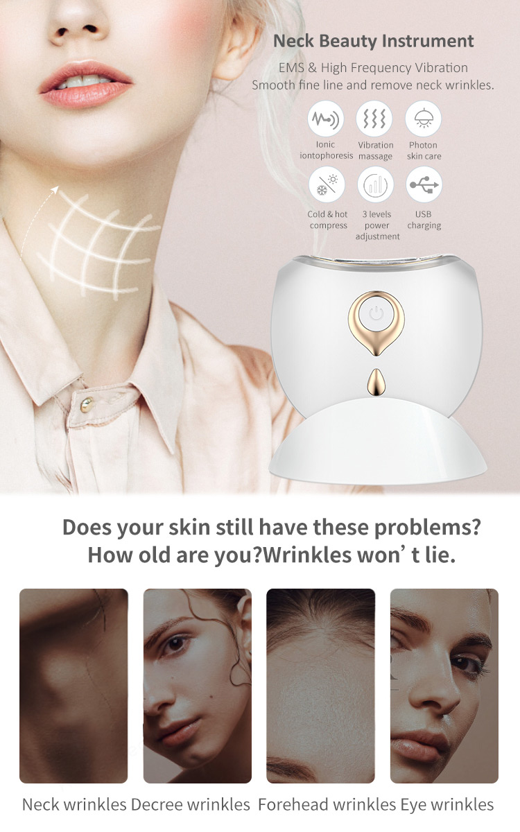 EMS & κραδασμοί υψηλής συχνότητας, λειαίνει τη λεπτή γραμμή και αφαιρεί τις ρυτίδες του λαιμού
