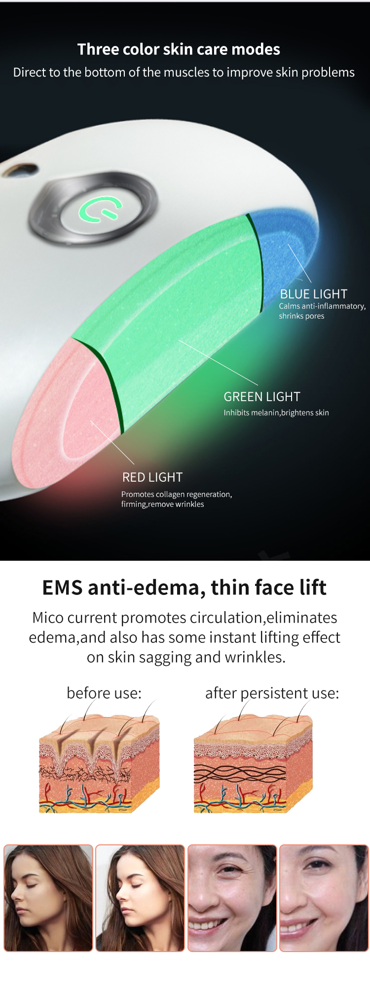 6. Συμπαγές μέγεθος, βολικό στη μεταφορά και χρήση ανά πάσα στιγμή, εύκολη λειτουργία Δόνηση υψηλής συχνότητας + μικρορεύμα, Το μικρό ρεύμα ενεργοποιεί τα κύτταρα και αποκαθιστά την ελαστικότητα του δέρματος