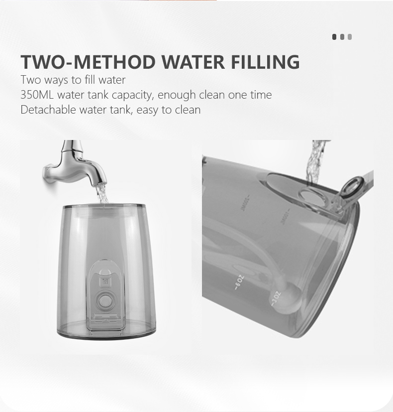 Αυτό το οδοντικό νήμα νερού διαθέτει αναβαθμισμένο δοχείο νερού 350 ml, διπλάσια χωρητικότητα από άλλα παλιά μοντέλα, εξαλείφοντας την ανάγκη για συχνές ανανεώσεις και κάνοντας τον στοματικό σας καθαρισμό πιο βολικό και αποτελεσματικό.