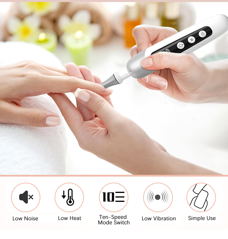 - 10 ΡΥΘΜΙΣΕΙΣ ΤΑΧΥΤΗΤΑΣ: Απολαύστε τη δύναμη του κιτ ηλεκτρικού μανικιούρ μας, που διαθέτει 10 προοδευτικές ρυθμίσεις ταχύτητας και ευέλικτες περιστροφές δεξιόστροφα και αριστερόστροφα. Το τρυπάνι νυχιών efile εγγυάται ακριβές λιμάρισμα σε χοντρά νύχια χεριών και ποδιών και είναι προσαρμοσμένο για όλους τους τύπους δέρματος, συμπεριλαμβανομένων των ατόμων με διαβήτη